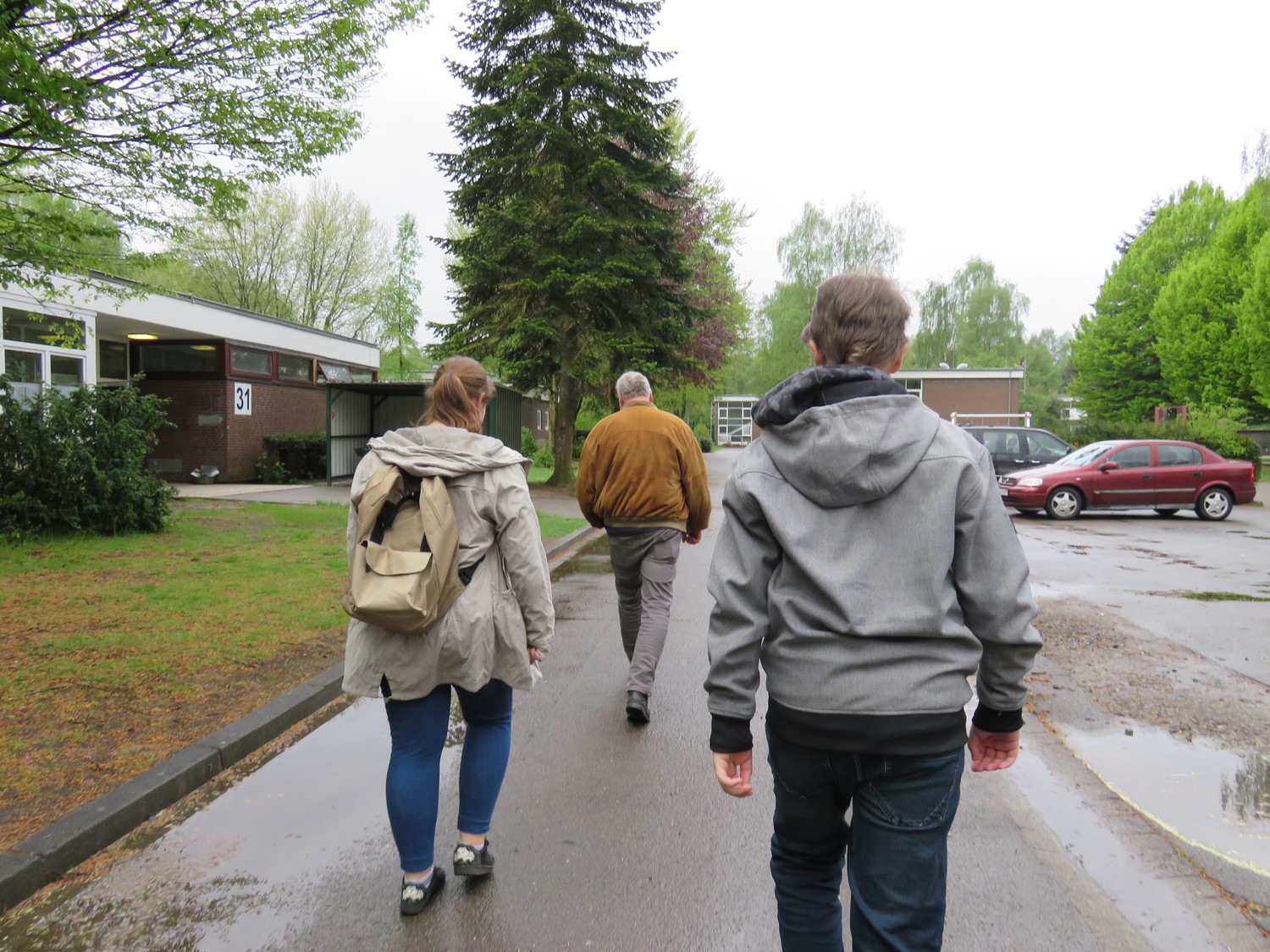 Die sechsköpfige Gruppe ließ sich auch von Regenschauern nicht abbringen und besichtigte den gesamten Standort, angefangen bei der Unterkunft über die Essensausgabe bis zu den Freizeitmöglichkeiten. Besonders interessierten sich die Schülerinnen und Schüler für die tägliche Arbeit in Kindergarten und Schule.