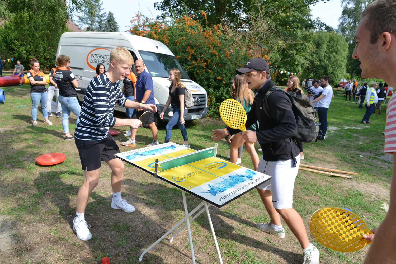 Dort hatten die Mitarbeiterinnen und Mitarbeiter der Landesaufnahmebehörde sowie viele Helferinnen und Helfer ein abwechslungsreiches Programm für Groß und Klein in der Erstaufnahmeeinrichtung in Oldenburg zusammengestellt. Ob Hüpfburg oder Zuckerwatte, Musik oder Staffellauf - Das Sommerfest ermöglichte allen Gästen sowie Bewohnerinnen und Bewohnern viele gemeinsame Erlebnisse und Gespräche.