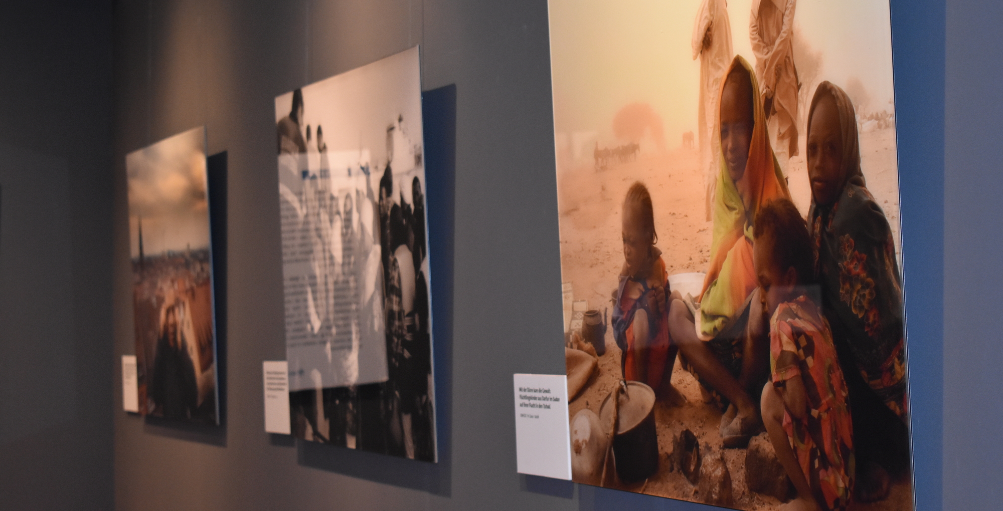 Standortleiter Michael Lewin führt am Weltflüchtlingstag ein letztes Mal durch die Foto-Ausstellung der UNO-Flüchtlingshilfe „Auf der Flucht“. UNHCR-Mitarbeiter, Fotojournalisten und unabhängige Fotografen geben mit ihren Bildern Flüchtlingen aus den vergangenen Jahrzehnten ein Gesicht.